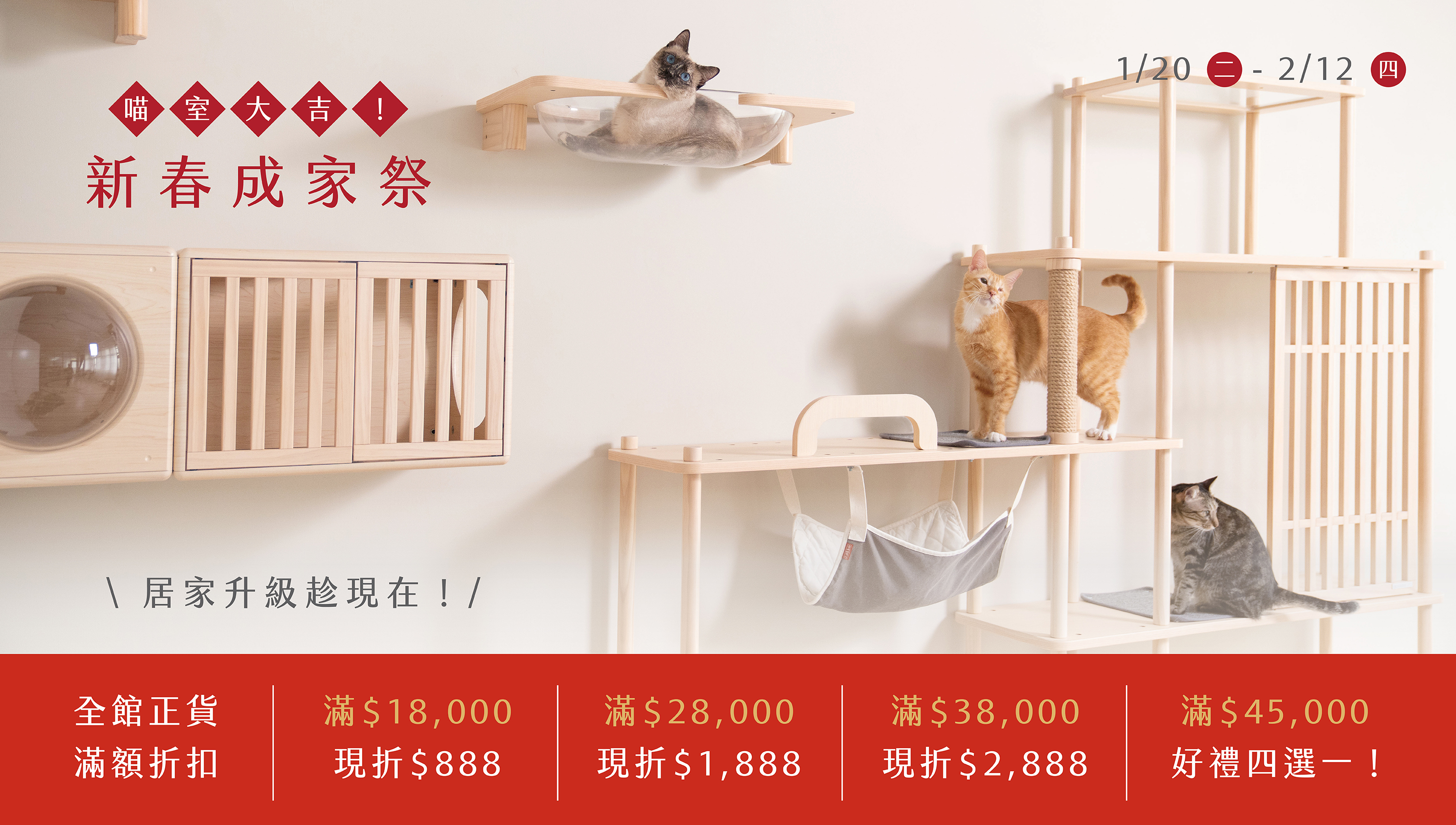 【喵室大吉🍊新春成家祭】滿額最高現折$2,888,再享滿額好禮四選一!除舊佈新趁現在🎊