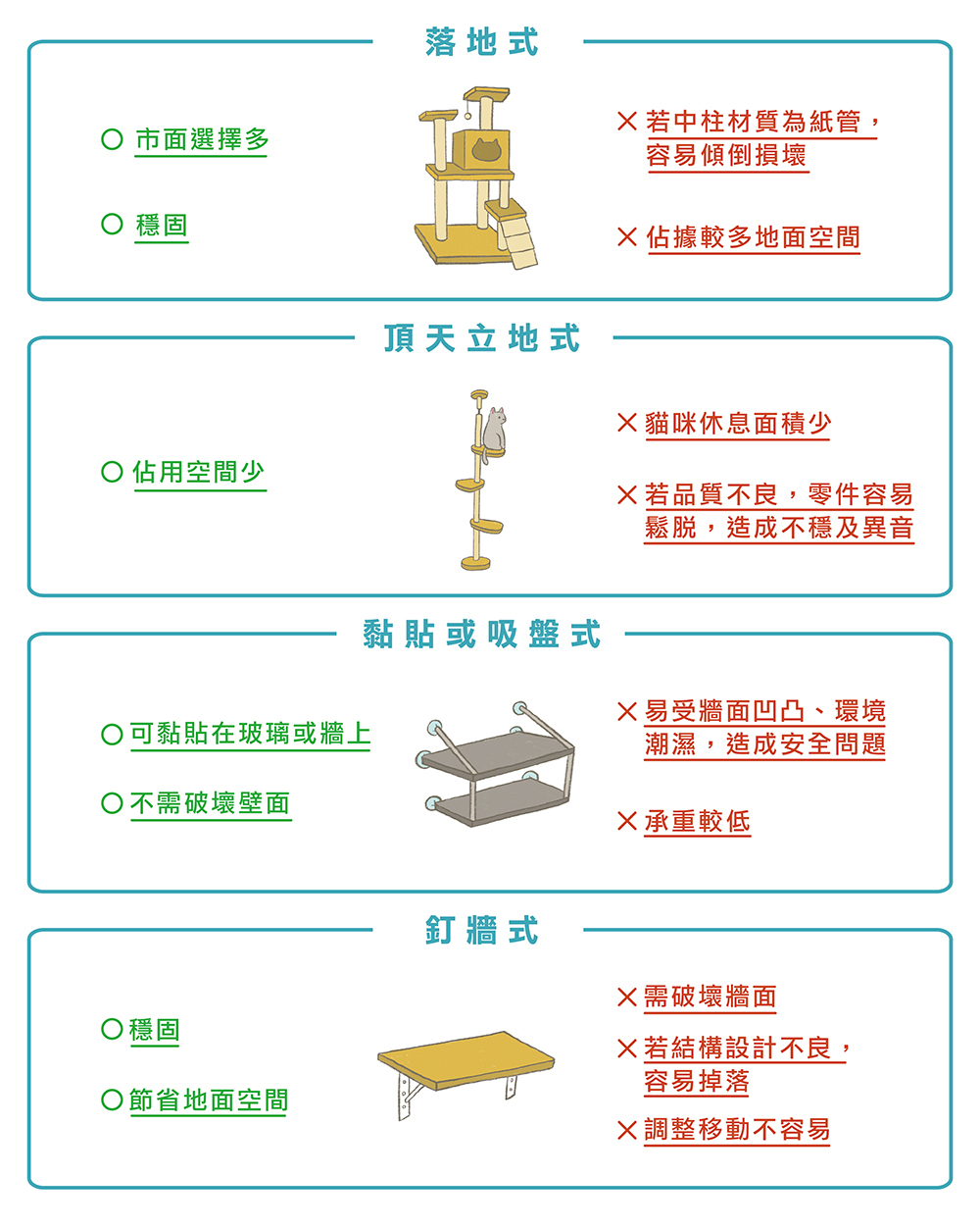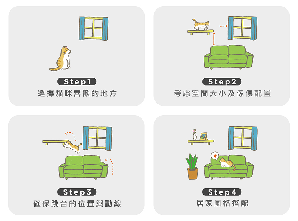 挑選適合貓咪與空間的尺寸,確保跳台不會佔用空間。