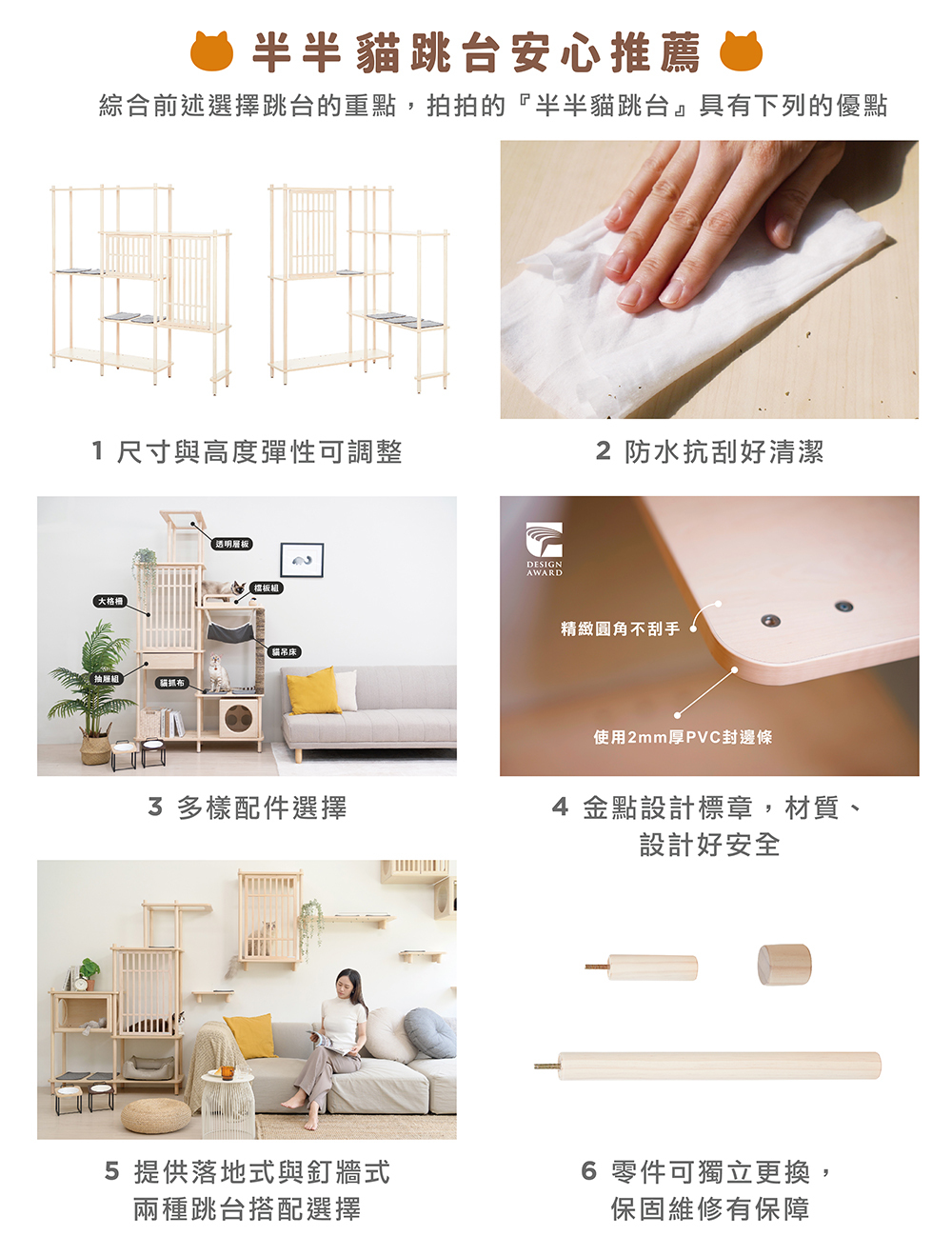 產品售出皆有保固維修服務,貓跳台零件可獨立更換,安心更划算。