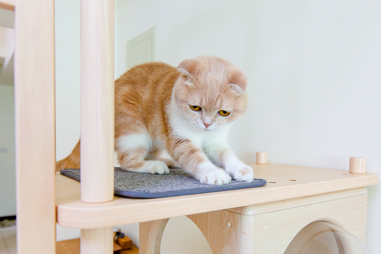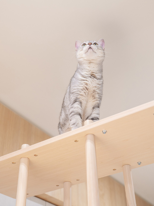 跳台品質超乎預期,板材跟五金都很乾淨;沒有異味、組裝跟清潔也很簡單!兒子很賞臉,特別喜歡待在下層~結合貓咪玩耍跟躲藏處的概念。
