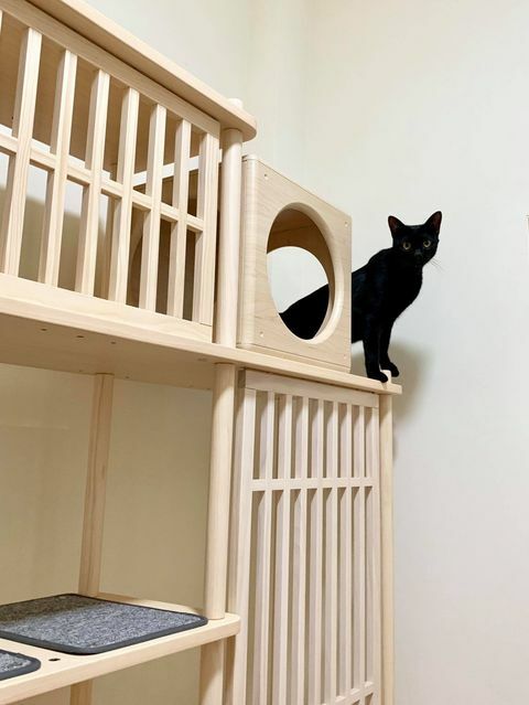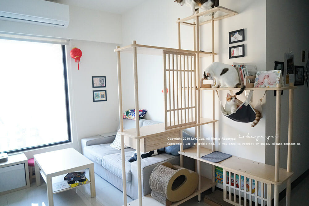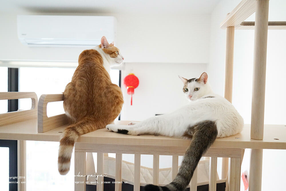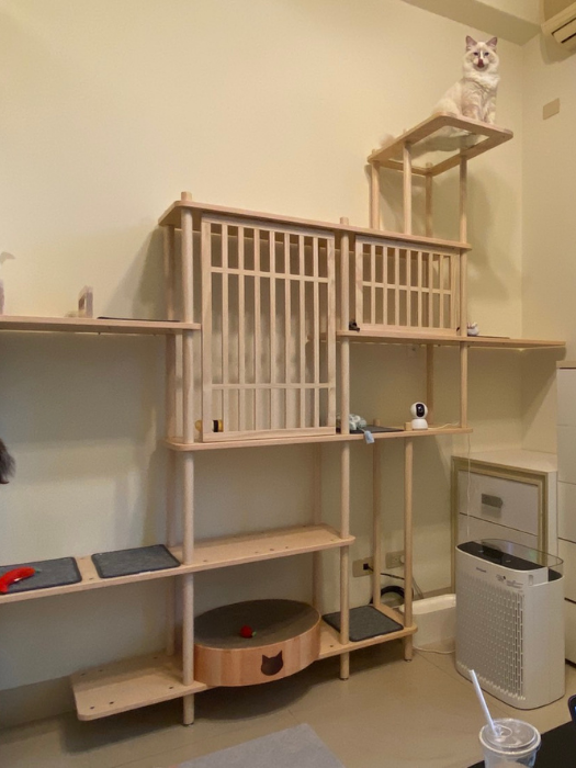 香港的房子體積小,不過半半貓跳台擺放在家中也不會顯得太擠迫,還超美超好看的,五隻貓更是滿意到不行!