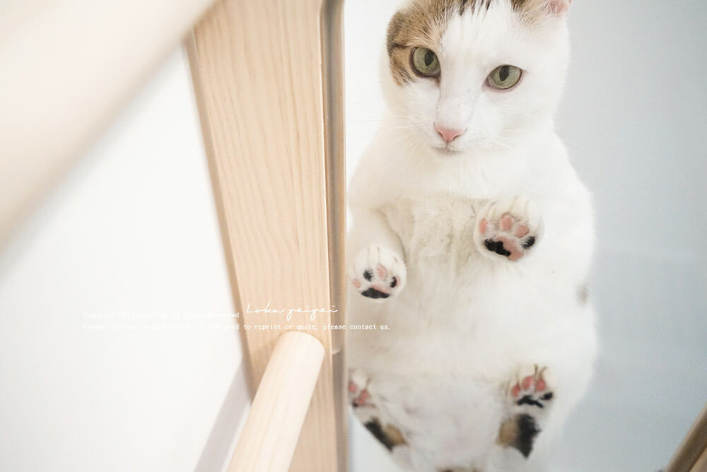 娜娜因為年紀大跳不高,但跳台的層板能讓她有個緩衝,娜娜喜歡抱著柱子、也會把毛毛手伸到柵欄撈撈,奴才自己也觀賞得很療癒。