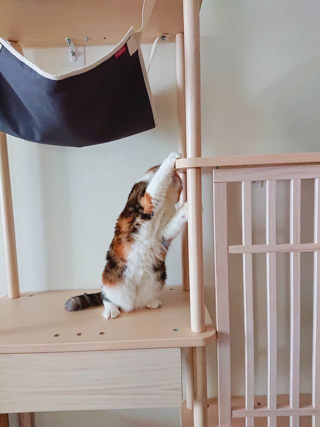逛寵物展看到半半貓跳台,摸到實體後忍不住下單了。