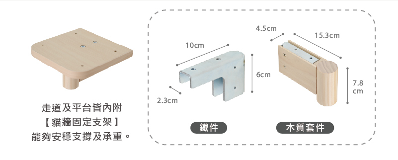 ・內容物:半半走道-20×1、貓牆固定支架×1