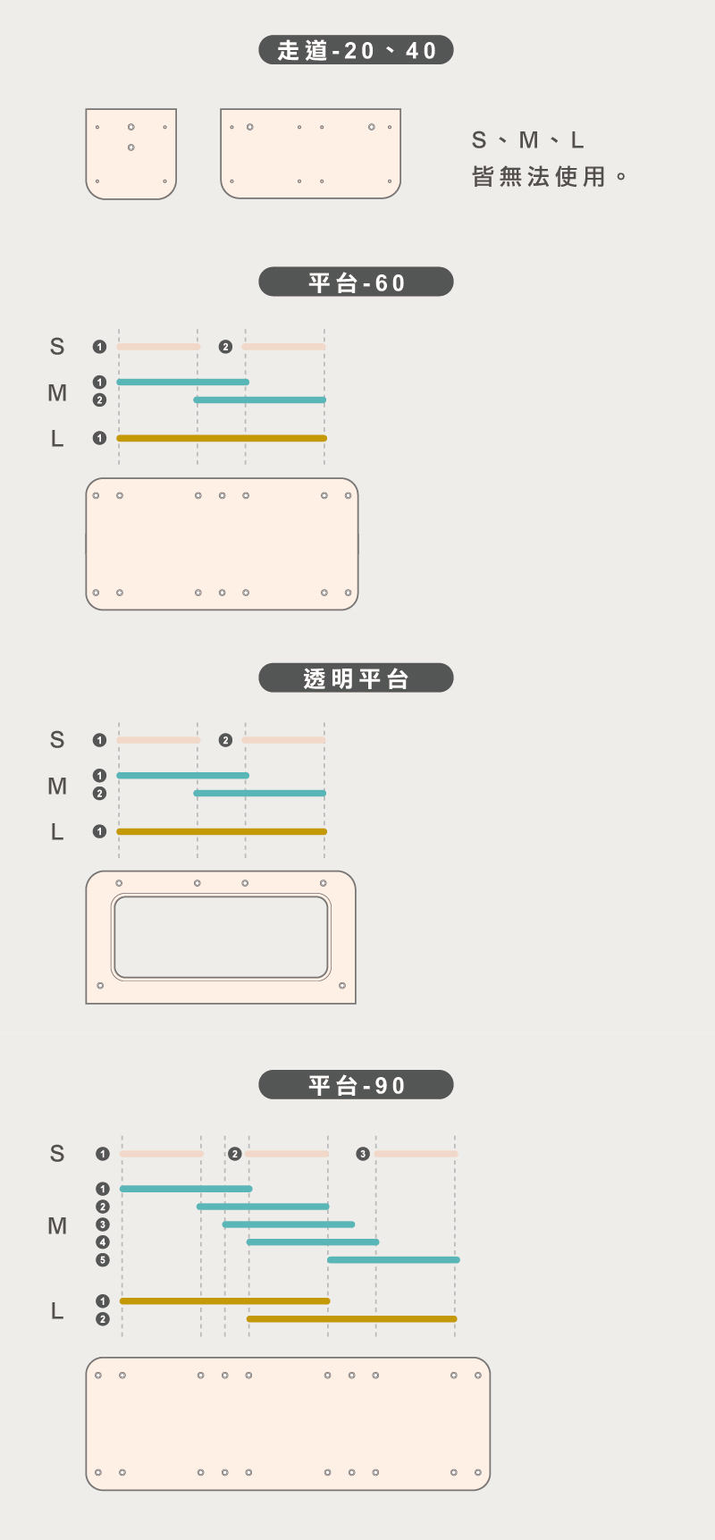 ・本商品不含「半半平台」,需於賣場另外購買,僅「半半平台、透明平台、半半層板」系列方能安裝半半護欄。