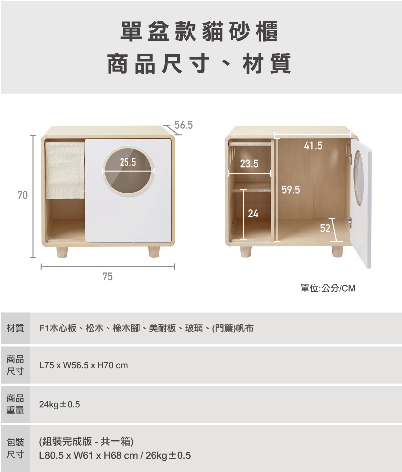 ・貓砂櫃皆附贈7cm櫃腳(4入)乙組。