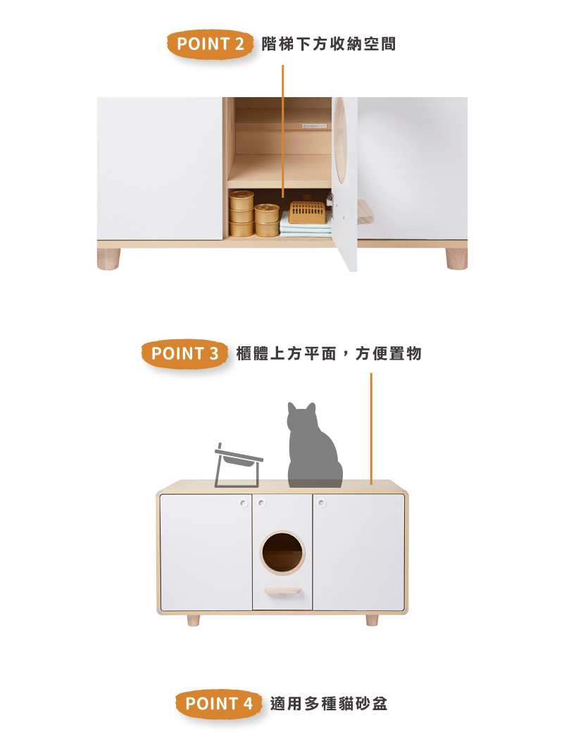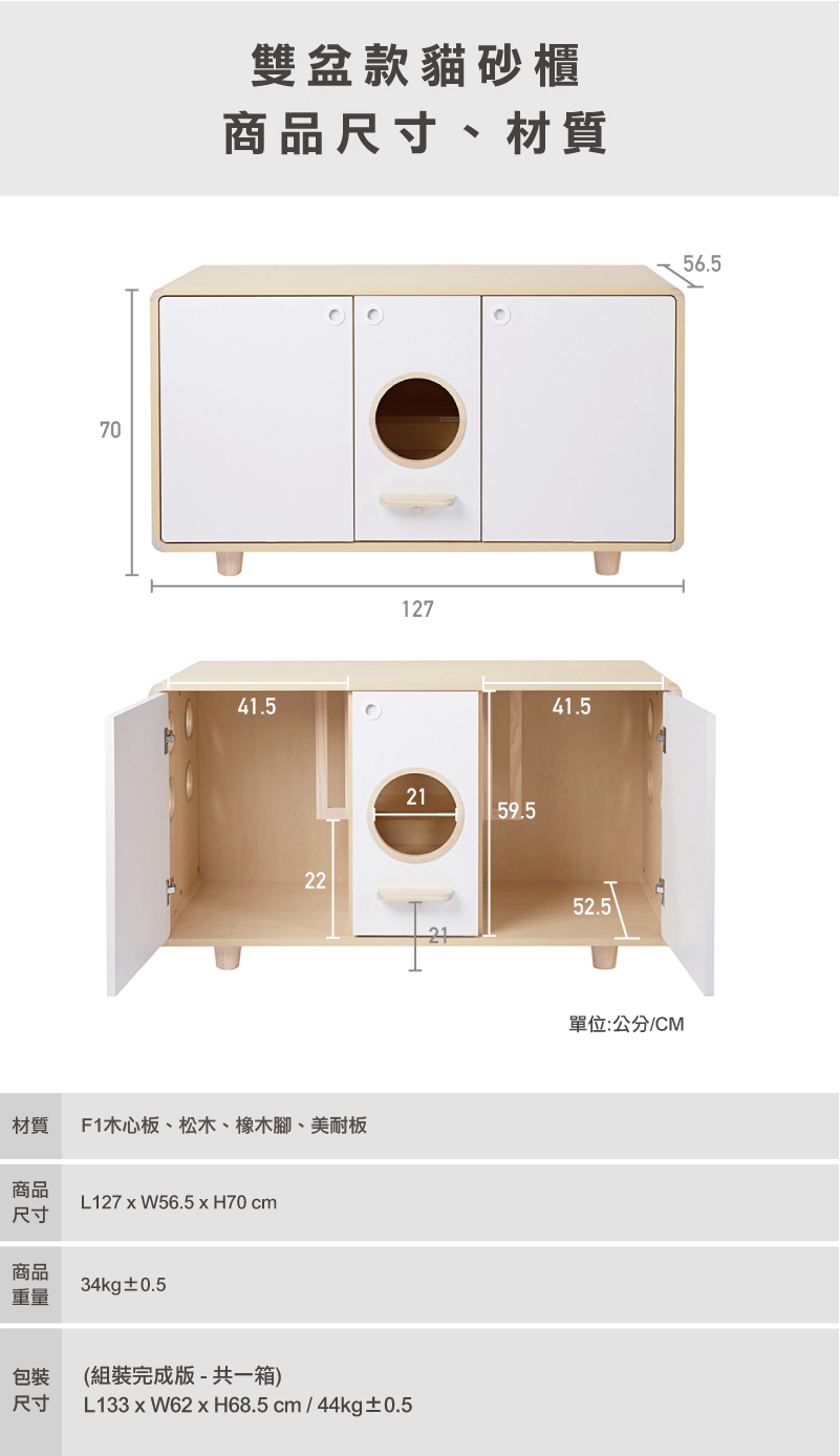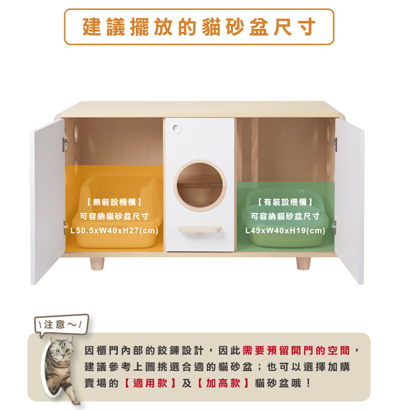 ・貓砂櫃皆附贈7cm櫃腳(4入)乙組。