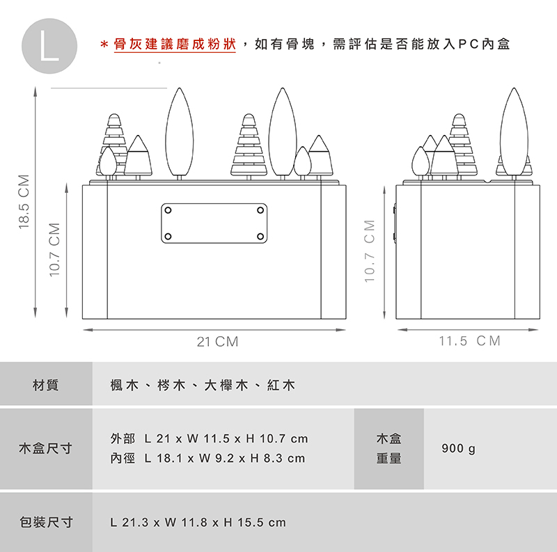 ・M尺寸回憶盒內附M尺寸內盒乙個,L尺寸回憶盒不含內盒需另加購