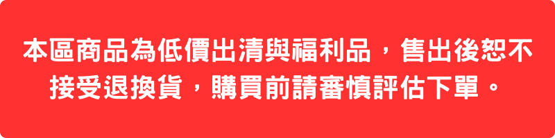 ※出清品售出後恕不接受退換貨,購買前請審慎評估再下單。