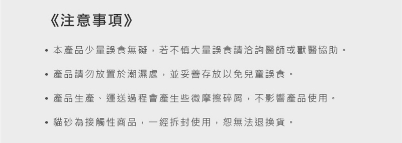 ●運輸過程中,無法避免碰撞導致貓砂破碎或因擠壓造成空氣跑入,導致真空包裝失效,並不會造成受潮及影響使用,不介意者再進行購買